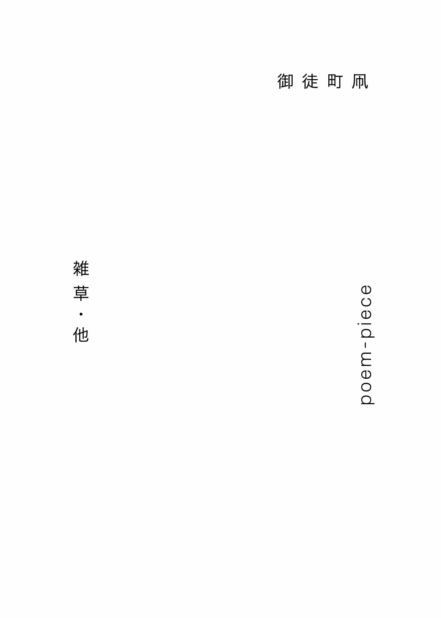 株式会社みらいパブリッシング(所在地:東京都杉並区高円寺、代表:松崎義行)が編集をした書籍「詩の時間」シリーズ・『雑草・他』をポエムピース株式会社(所在地:東京都杉並区高円寺、代表:松崎義行)から2019年11月18日に刊行します。