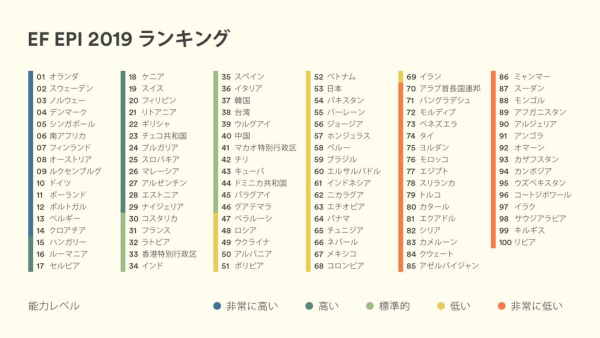 なお、EF EPI 英語能力指数2019年のランキングおよびレポート全文は、以下のサイトでご覧いただけます。http://www.efjapan.co.jp/epi/