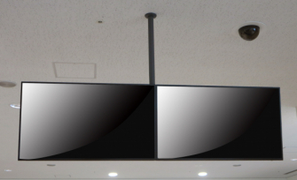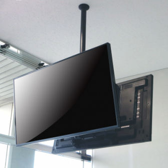 大型商業施設をはじめ病院・公共施設・交通施設など、人の集まる施設のインフォメーションは年々情報量が多くなっています。特に壁面のない空間での告知(サイネージ)に関しては、天井からの吊り下げ設置の需要が増しています。オーエスの薄型ディスプレイハンガーは、CRTテレビ時代からの多くの実績を持つ、安心のブランドです。2面のディスプレイモニターを一本のパイプで支えるハンガーにも、人の往来する場所へ取り付けるバランスや安全性に十分に配慮した設計のハンガーです。