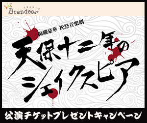 株式会社デファクトスタンダード(本社:東京都大田区、代表取締役社長:尾嶋崇遠、東証一部上場:証券コード3545、以下「デファクトスタンダード」)が運営する「ブランディア」は、ブランディアの宅配買取を利用した方の中から抽選でS席ペア合計50組100名様をご招待する「天保十二年のシェイクスピア」公演チケットプレゼントキャンペーンを実施中です。