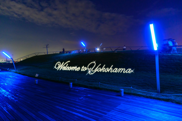 テーマ:来場者をお出迎えするグラウンドイルミ芝生部分には夜景撮影にドラマチックさが加わるよう、キラキラと煌めくブルーのグラウンドイルミネーション。さらに横浜を訪れる方に向けた「Welcome to Yokohama」の文字イルミネーションで歓迎を演出します。