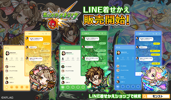 株式会社インクルーズ(東京都渋谷区、代表取締役社長 山崎 健司)は、LINE株式会社(東京都新宿区、代表取締役社長 出澤 剛)が運営するコミュニケーションアプリ「LINE」内の着せかえショップにて、株式会社ミクシィ(東京都渋谷区、代表取締役社長 木村 弘毅)のXFLAGが提供するスマートフォンアプリ「モンスターストライク」3点LINE着せかえを2019年11月21日(木)に一斉配信致しました。