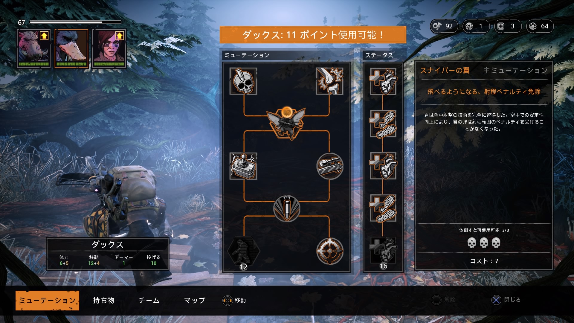 異なる個性をスキルを有するミュータントから3体を選び、ユニット単位で操作行うターン制をしいています。敵に発見されると戦闘に発展するため、いかに優位なポジションで冒険を進行するかがカギを握ります。ターン制バトルで展開する戦術と、リアルタイムでのステルス行動で探索・索敵をじっくり楽しめるシングルプレイ専用タイトルです。