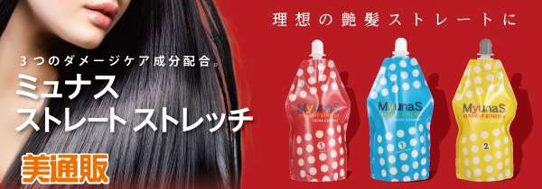 クセ毛やうねり毛の悩みを解決して、理想のストレートヘアに導いてくれる「縮毛矯正」。ただし、薬剤やアイロン熱によるヘアダメージを気にするお客様も多いようです。そこで、「美通販」では、髪をケア・補修する成分を配合したストレートパーマ剤「ミュナス ストレートストレッチ」を、ピックアップ。ダメージレス※「縮毛矯正」キャンペーンとして、業界最安値を目指した美通販会員価格でご提供いたします。
