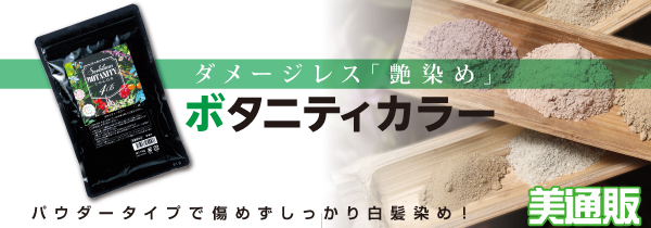 白髪は染めたいが「髪の傷みが気になる」、「ハリや艶が欲しい」・・・そんな多くのグレイカラー需要とエイジングヘアのお悩みにお応えするアイテムとして、「ボタニティカラー」をピックアップ。ダメージレス「艶染め」キャンペーンとして、業界最安値を目指した美通販会員特別価格でご提供いたします。