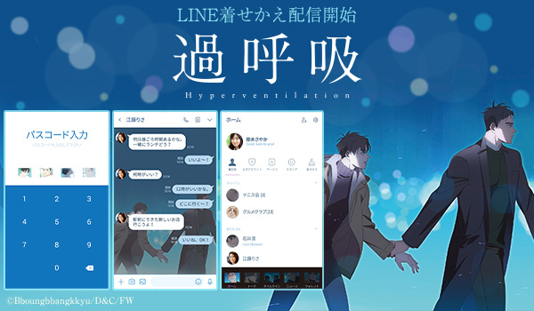韓国発・大人気ボーイズラブアニメーション「過呼吸」が日本でのアニメーションDVD付きコミックス発売を記念して、LINEスタンプ・LINE着せかえ同時リリース!息をのむような繊細で美麗なイラスト、世界観に彩りを飾るBGMなど他、魅了され「過呼吸」がTwitterでバズり日本でも反響。LINEスタンプやLINE着せかえを活用することで“9年ぶりに動き出す甘酸っぱい恋”を描く「過呼吸」をLINEでお楽しみいただけます。