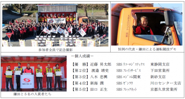 競技は、(1)日常点検(350 点)、(2)学科(250 点)、(3)運転(400 点)の合計1,000 点となる3種目で構成され、熱闘の末にSBSリコーロジスティクスの近藤昇太郎選手が優勝しました。