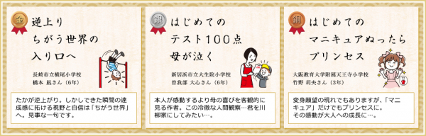 第1回となる今回は、全国の皆さまから37,239句のご応募をいただき、新しいことをはじめるワクワク、はじめて何かと出会うドキドキ。あるいは思い出に残るひとコマや、クスっと笑えるシーン等、たくさんの「はじめて」エピソードが寄せられました。皆さまのご応募、誠にありがとうございました。