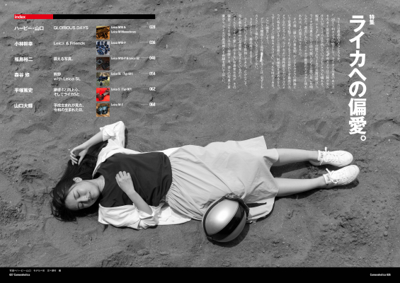 本誌では、ライカを愛機として活躍中のフォトグラファーの作品を多数掲載した、50ページ以上もの総力特集「ライカへの偏愛」のほか、日本を代表するライカ派の写真家・植田正治氏の面影を訪ねる巻頭スペシャルと、人気写真家・田中長徳氏による京都撮影旅行記などの大型企画に加え、「ファーストライカを、フィルムで愉しむ」「おこづかいで買えるオールド“ライカ”レンズ」といったバラエティに富んだ特集記事を用意。