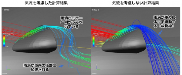 図1 気流の影響を考慮したミラー周りの雨滴挙動解析