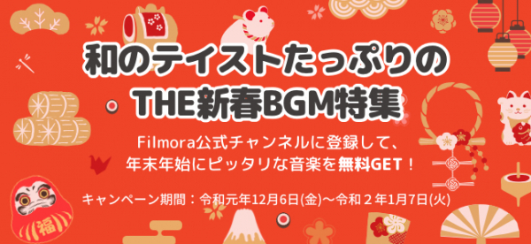 消費者向けソフトウェア開発・販売を展開する株式会社ワンダーシェアーソフトウェア(東京都千代田区、代表 呉太兵)は令和元年12月6日(金)より新春にぴったりのBGMが無料でダウンロードできる「THE新春BGM特集」キャンペーンを開始しました。