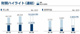 通期の連結業績予想については、こうした施策と今後の為替相場や需要予測等、最新の見通しを踏まえて検討した結果、期初計画から修正させていただくこととしました。そのため、通期の連結業績見通しは、売上高50,000百万円(前年同期比3.4%増)、営業利益は3,200百万円(同16.3%増)、経時利益は2,900百万円(同8.1%増)、親会社株主に帰属する当期純利益は1,720百万円(同9.5%増)を予定しております。