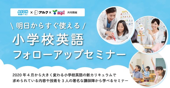 児童英語教育40年の株式会社mpi松香フォニックス(本社:東京都渋谷区、代表:竹村千栄子)は、語学教材の開発を手掛ける株式会社アルク(本社:東京都千代田区、代表:田中伸明)、ならびに当社グループ会社で英会話学校を運営する株式会社イーオン(本社:東京都新宿区、代表取締役:三宅義和、以下「イーオン」)と共同で、小学校教員を対象としたセミナー「小学校英語 フォローアップセミナー」を、2020年3月28日(土)、イーオン東京本社(住所:東京都新宿区西新宿6-10-1 日土地西新宿ビル16F)にて開催します。