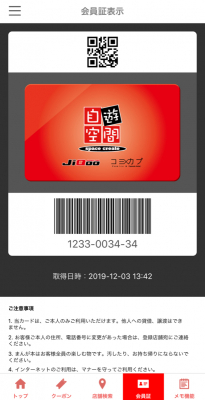 「自遊空間とくとくクーポン」は、スペースクリエイト自遊空間の会員証機能等を搭載したスマートフォン向けアプリです。登録された会員情報をアプリに連携することで、会員証をアプリ内で表示できるようになり、また、自遊空間店舗の来店状況等に応じてクーポンが配信される他、ゲームにチャレンジしてクーポンが獲得できるサービスや、店舗内にて飲食注文ができる機能などが利用可能になります。