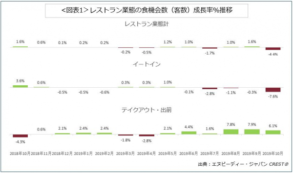 外食・中食市場情報サービス『CREST(R)*1』を提供するエヌピーディー・ジャパン株式会社(東京都港区、トーマス・リンチ代表)は、外食・中食市場における、消費増税後のイートイン、テイクアウト動向分析レポートを2019年12月17日に公表します。