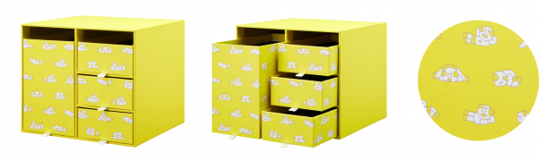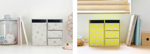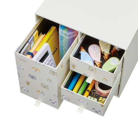今回発売する限定柄は、えちがわのりゆきさんが描くやさしくほんわかした画風の「おやつタイム柄」と、ニシワキタダシさんが描くちょっぴりシュールでユーモアあふれる「ぐーたら柄」の2種類です。散らかりがちな小物類を“簡単”に、“楽しみながら”整理していただけます。誕生日祝いなどプレゼントにもおすすめです。サイズはSサイズ、メーカー希望小売価格(税抜)は2,400円です。