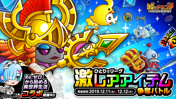 株式会社アソビズム(本社:東京都千代田区、代表取締役:大手智之)は、App Store・Google Playにて好評配信中の『城とドラゴン』で、2019年12月11日(水)より「ひとりでリーグ激レアアイテム争奪バトル」を開催いたします。
