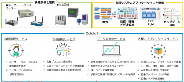 「OctoIoTサービス」は工場設備と企業システムの連携により、お客様の必要な情報を分析し課題解決を実現するソリューションサービスであり、多くの実績を有しています。