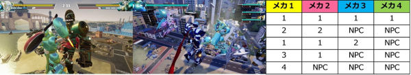 VSモード、マッチメイク、アーケードでプレイ可能な共闘モード。一機のメカを最大4人乗りで操作することが可能です。二人三脚のようにパイロット同士が同調することが勝利のカギとなりますが、同調できないことでかえって盛り上がるといったアクシデントがさらなる魅力となります。お仲間や家族の集まりが増える年末年始に格好の盛り上げツールとなります。