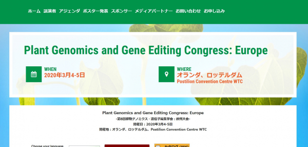 会議:「Plant Genomics and Gene Editing Congress: Europe-第8回植物ゲノミクス・遺伝子編集学会 欧州大会」