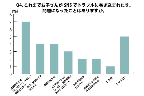Q4.これまでお子さんがSNSでトラブルに巻き込まれたり、問題になったことはありますか。