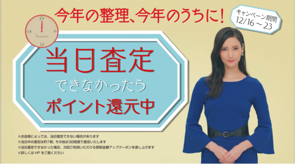 12月に入り、世間は大掃除シーズンに突入、洋服の不要品が多く出るこの時期は、例年宅配買取サービスの需要も非常に高まります。ブランディアでは、そんな大掃除の不用品処分のニーズにスピーディにお応えすべく、「今年の整理、今年のうちに」というキャッチフレーズで「当日査定チャレンジキャンペーン」を実施することとなりました。