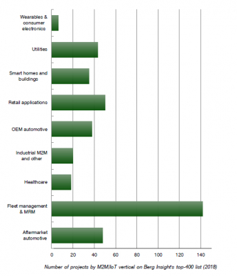 Berg Insight has compiled a list of the 400 largest cellular IoT projects worldwide. The information included about each of these is mainly the company name and location, project name and type, website address, IoT vertical, the number of connections by region (including 5-year forecasts) and operators involved. These 400 projects represented 279 million subscriptions at the end of 2018, which is at the same time about 23.0 percent of the total cellular IoT connections worldwide. The list is delivered in Excel format.