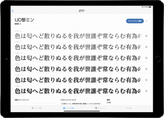 主にデザインなどの創作活動をするクリエイターをターゲットとする、iPad向けのモリサワフォントのダウンロードアプリです。「リュウミン」「黎ミン」「太ミンA101」といったモリサワやタイプバンクブランドから厳選した人気の和文フォントや多言語フォントなど、471書体のバリエーション豊かなフォントが利用できます。