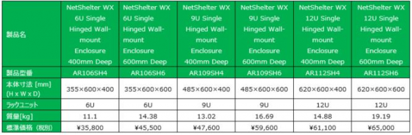 また、本UPSが設置可能で、主にネットワーク機器を収納することを想定した壁面取付けラック「NetShelter WX」も発売します。2020年1月24日の受注開始を予定しています。