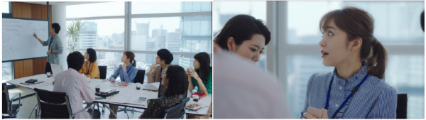 会議で飛び交うビジネス用語に「うんうん。」と頷くも、実はこっそりスマホで検索している指原さん。その姿を同僚に見られ、笑われてしまいます。そんな経験から、“こんな事、聞いていいのかな”と不安になり、ほけんの窓口の相談にも保険について事前に調べて挑みます。不安な表情の指原さんが、担当者の「何でも聞いてくださいね」の一言で、一気に肩の荷がおり安心して保険の相談を始めるというストーリーです。