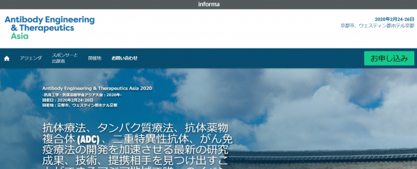 先端分野の市場情報を提供する株式会社グローバルインフォメーション(神奈川県川崎市、代表取締役社長:小野 悟)は、2020年2月24-26日 京都市、ウェスティン都ホテル京都にて開催されますKNect365 Life Sciences主催 国際学会 「Antibody Engineering & Therapeutics Asia 2020-抗体工学・抗体治療学会アジア大会:2020年」の代理店として参加のお申込み受付を12月23日より開始致しました。