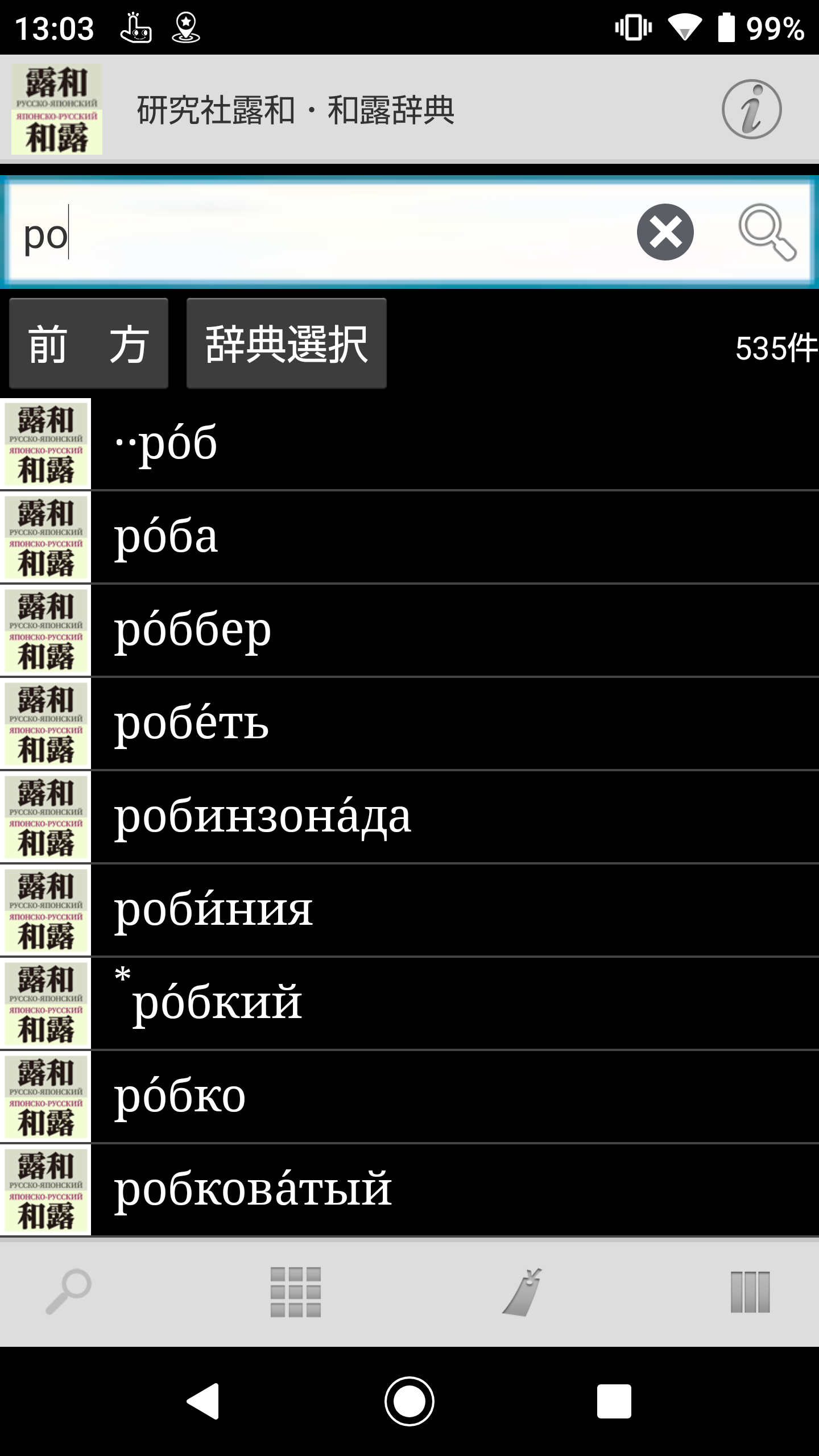 キーワードの前方/後方/完全/部分一致+全文検索搭載で、露和・和露どちらもらくらく発見