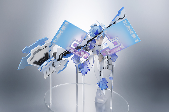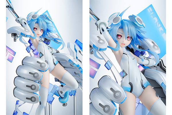 大迫力の巨大な斧を構えたポーズにて、女神化姿を立体化。女神化によって元気いっぱいなホワイトハートの表情はもちろん、青く長い髪やプロセッサパーツ、美しいボディラインを丁寧に再現。