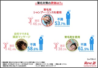 続いて、上位3位の「育毛用シャンプー・リンス」「自宅でできる頭皮マッサージ」「育毛剤」による薄毛対策に取り組んでいる方に、「薄毛対策の評価を教えてください」という質問をしてみました。