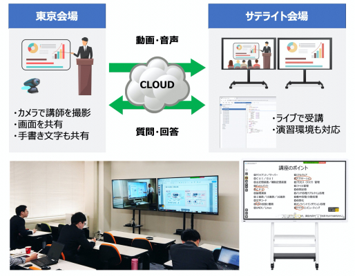 ●東京で開催しているコースを同時に各所のサテライト会場に配信し、画像と音声を通じて受講可能
