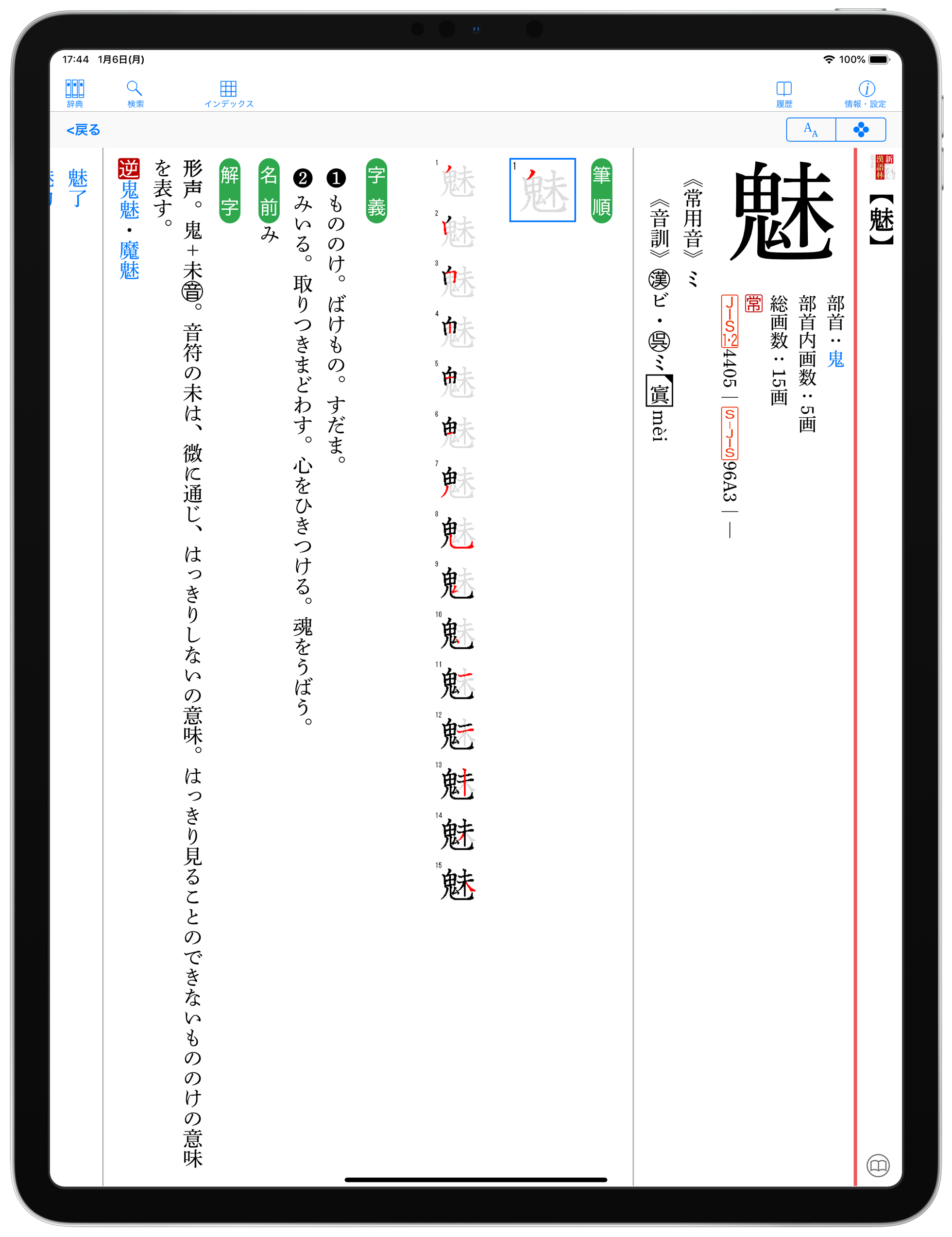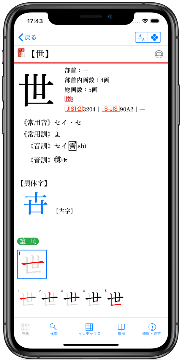 ●画数、よみ、部首から絞り込んで漢字を検索できる漢字検索や、用例を漢文/出典元から検索できる漢文検索を搭載