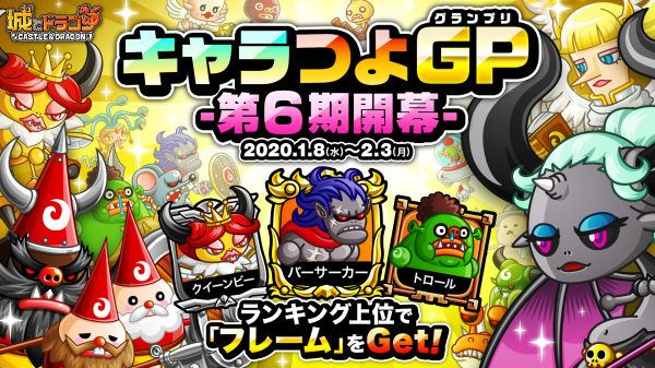 株式会社アソビズム(本社:東京都千代田区、代表取締役:大手智之)は、App Store・Google Playにて好評配信中の『城とドラゴン』で、2020年1月8日(水)より「キャラつよグランプリ」を開催いたします。
