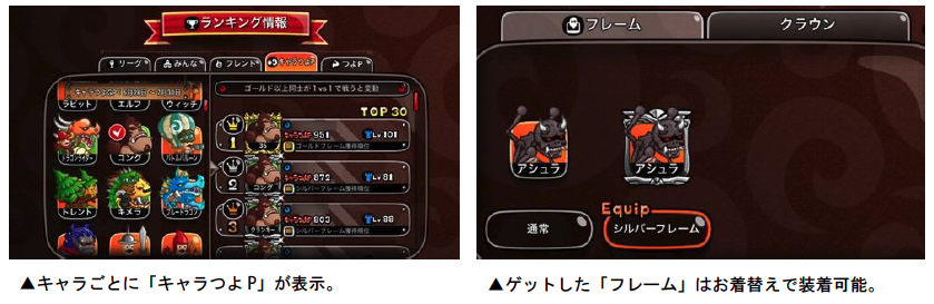 「キャラつよグランプリ」とは、対象キャラをリーダーにして戦い、強さを表すポイントとなる「キャラつよP」を競うイベントです。対象となるバトルは開催期間中の「ひとりでリーグ」となり、イベント終了時のランキングに応じて、上位者にはキャラアイコンを装飾できる「フレーム」が贈られます。