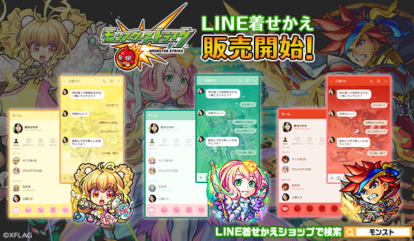 株式会社インクルーズ(東京都渋谷区、代表取締役社長 山﨑 健司)は、LINE株式会社(東京都新宿区、代表取締役社長 出澤 剛)が運営するコミュニケーションアプリ「LINE」内の着せかえショップにて、株式会社ミクシィ(東京都渋谷区、代表取締役社長執行役員:木村 弘毅)のXFLAGが提供するスマートフォンアプリ「モンスターストライク」のLINE着せかえ3種を2020年1月9日(木)に一斉配信致しました。