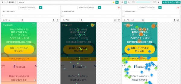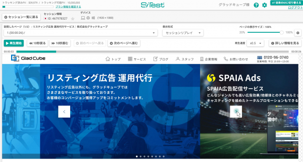 ウェブサイトに訪問したすべてのセッションを「動画」で確認することができます。PCユーザーのマウスポインタの動きだけではなく、スマートフォンユーザーのスワイプやタップといったジェスチャーも確認できます。