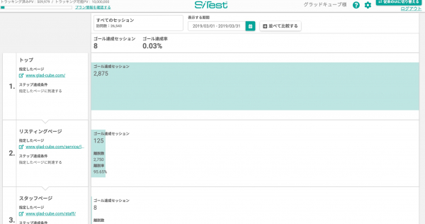 自身で様々なゴールを設定できます。ゴールステップの設定も容易で、ユーザーがどのステップまでたどり着いたかをファネル形式で分析することが可能です。