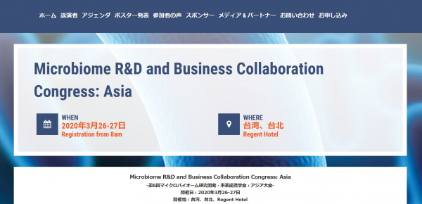 2020年3月に台湾で開催されるこの学会では、50件以上の講演が予定されており、マイクロバイオームに関する最新の研究成果や研究開発の新たなトレンドについて学ぶととともに、業務提携や資金調達のチャンスを活かして研究成果を有望な製品へと結実させるための有効な事業戦略や商業化戦略を探求することができます。