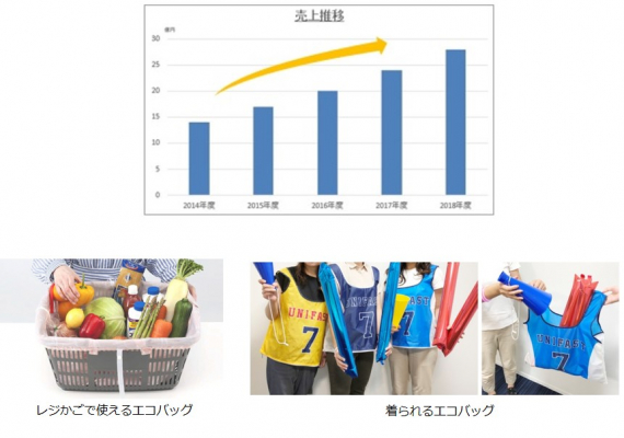 近年はオリジナル商品の開発に力を注いでおり、昨年発売した「レジかごで使えるエコバッグ」は、販売開始直後に大手企業の目に留まり、20万個を受注しました。また、10月にはエコバッグが応援ユニフォームに早変わりする「着られるエコバッグ」も発表するなど、SDGsにも貢献できるイノベイティブなアイテムを次々と生み出しています。