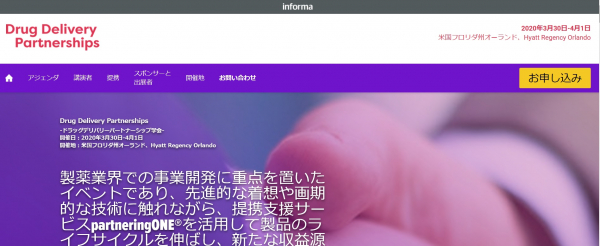 先端分野の市場情報を提供する株式会社グローバルインフォメーション(神奈川県川崎市、代表取締役社長:小野 悟)は、2020年3月30日-4月1日 米国 フロリダ州 オーランドにて開催されますKNect365 Life Sciences主催 国際学会 「Drug Delivery Partnerships-ドラッグデリバリーパートナーシップ学会」の代理店として参加のお申込み受付を1月15日より開始致しました。
