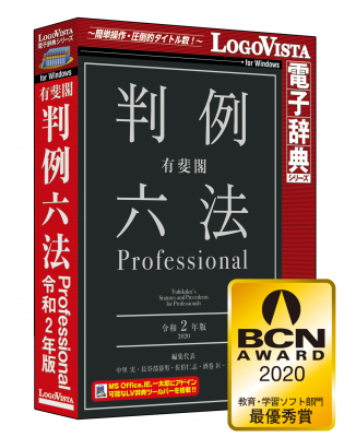 ロゴヴィスタ株式会社は、パソコン用電子辞典において絶対なる信頼と実績を誇るベストセラー「LogoVista電子辞典シリーズ」の新作として、『有斐閣判例六法 Professional 令和2年版』を、2020年2月7日(金)よりパソコンショップ、カメラ系量販店、大手書店、ダウンロード販売サイトなどで発売いたします。