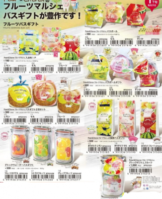 ★Polar & Citronフルーツマルシェ 入浴料1P (レモン、もも、フルーツカクテルの3種)価格 190円(税抜)