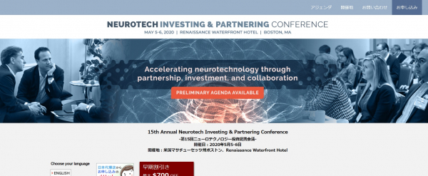 会議:「15th Annual Neurotech Investing & Partnering Conference-第15回ニューロテクノロジー投資提携会議」
