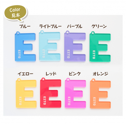カラーは8パターンのご用意です。アクリルにプリントするお名前は漢字・ひらがな・ローマ字から選択可能です。