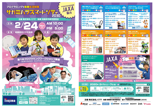 株式会社ノジマ(神奈川県横浜市、代表執行役社長 野島廣司)は、2020年2月24日(月・祝)、国立研究開発法人 宇宙航空研究開発機構(以下JAXA)の協力のもと、相模原市教育委員会後援を得て小学生を対象に官民連携で行う、楽しく学べるプログラミングワークショップ「プログラミングで未来生活体験★サガミハラスマートシティ2030」を相模原市内で開催いたします。