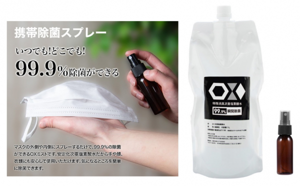 株式会社OTOGINO(オトギノ:代表取締役社長 鬼武公洋 本社 大分県日田市北友田 2 丁目 2123 番地 1)は、E-コマースにて販売中の除菌消臭剤『OX(オックス)ミスト』『OX(オックス)シャワー』と、携帯スプレーボトルをセットにした「携帯除菌スプレー」を2020年1月24日に販売開始しました。